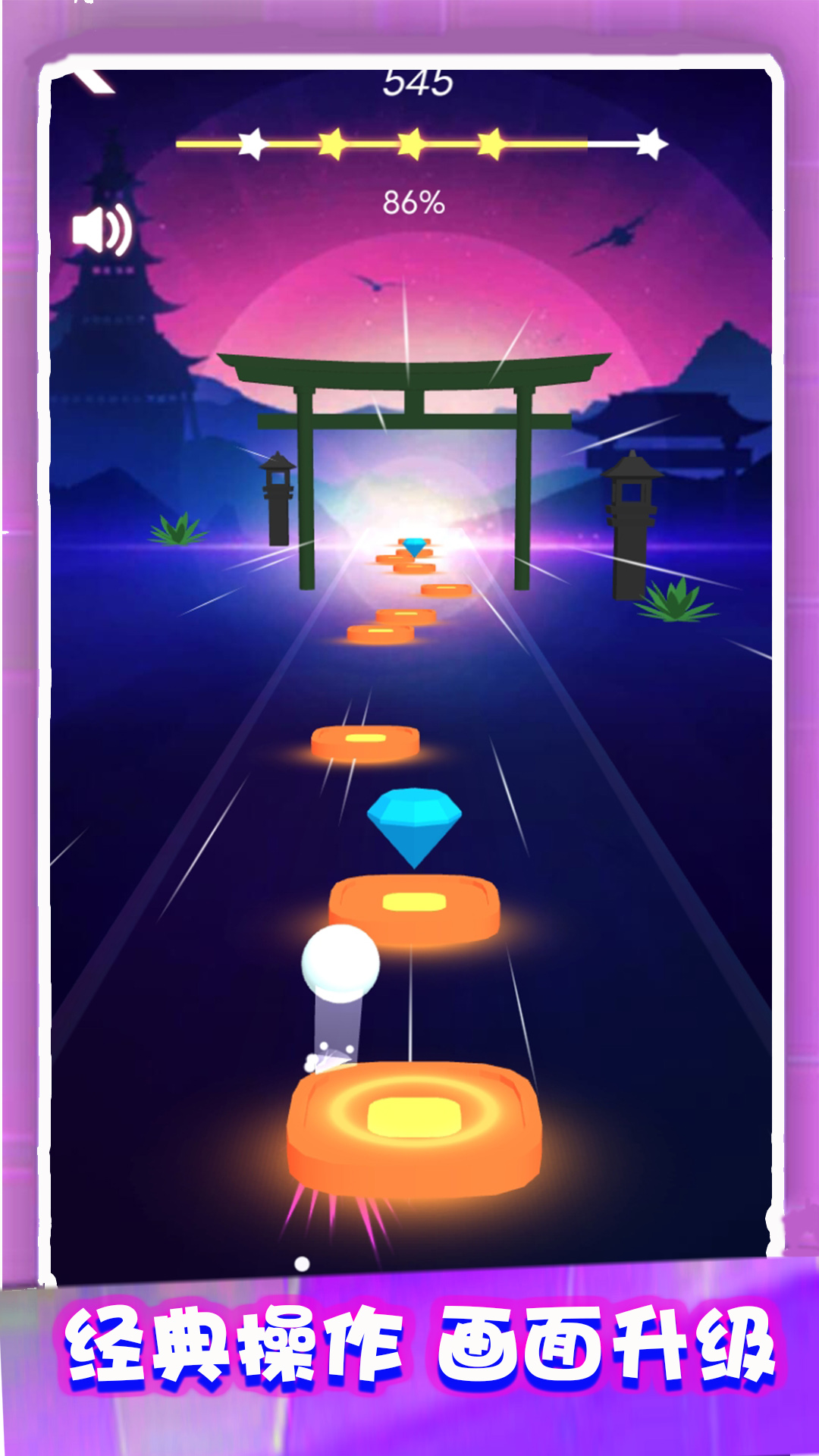 闪耀舞动星是一款小球闯关跑酷游戏,这里的画面非常的精美好看,流畅的操作体验,华丽的特效带来很好的视觉效果,游戏内的音乐背景非常的治愈 ,玩家能感受到无尽的乐趣,在游戏内感受畅快的的游戏内容,你需要控制小球快速的躲避障碍物,在场景内进行奔跑,跳跃等等动作。