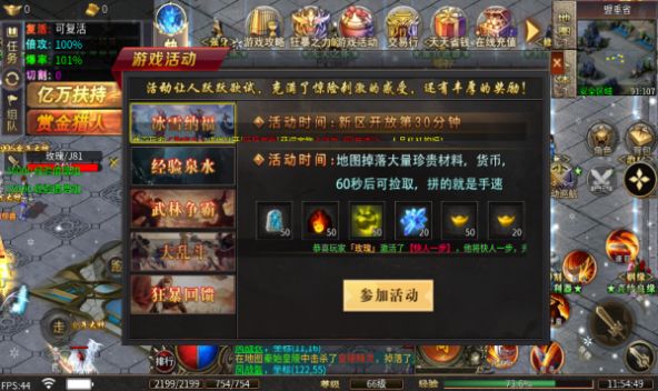 1、热血战斗系统:复刻经典传奇,重现万人同屏激战的热血攻沙盛况;