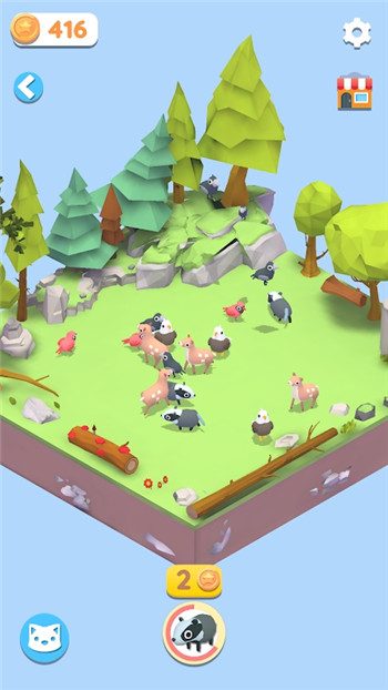 1、通过拖拽动物方块,合并相同的动物,创造更高等级的新动物;