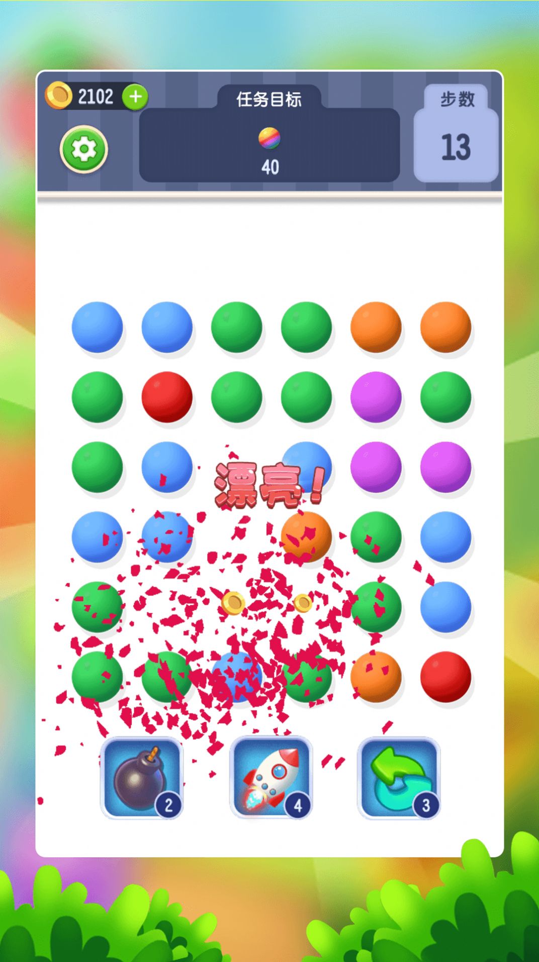 2、还设置了一些额外的游戏元素和道具,如特殊的彩虹珠子、炸弹珠子等。