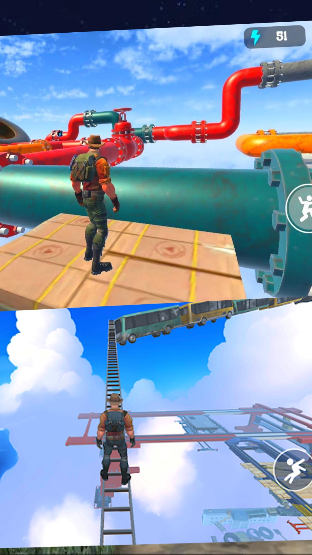 1、高清细腻的3D画面,刻画紧张刺激的高空环境,让玩家仿佛身临其境;
