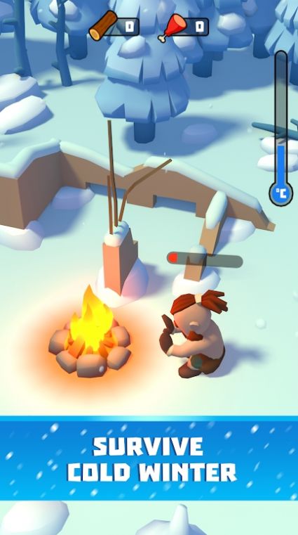 2、银装素裹的卡通3D游戏世界之中,会通过恶劣的天气背景,以及荒野的生存难环境。
