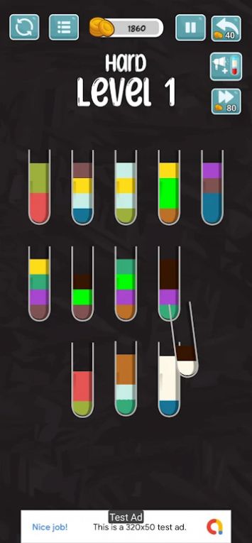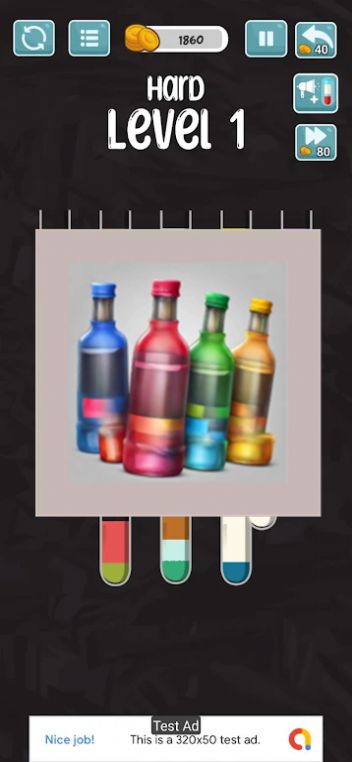 【瓶子饮料分类】玩家们可以在游戏世界中可以看到很多不同颜色的瓶子,需要做的就是想相同的液体倒置在一个瓶子中,只有找到关键的逻辑性才能在分开摆放与倾倒上更快的结束我们的排序,让挑战更轻松简单的完成每次的挑战,后续的关卡会越来越难。