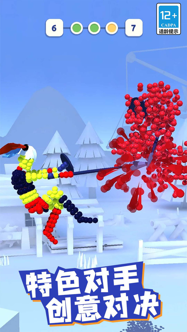 2、游戏中,玩家将操控火柴人战士,在多种竞技场中展开激烈对抗和冒险闯关;