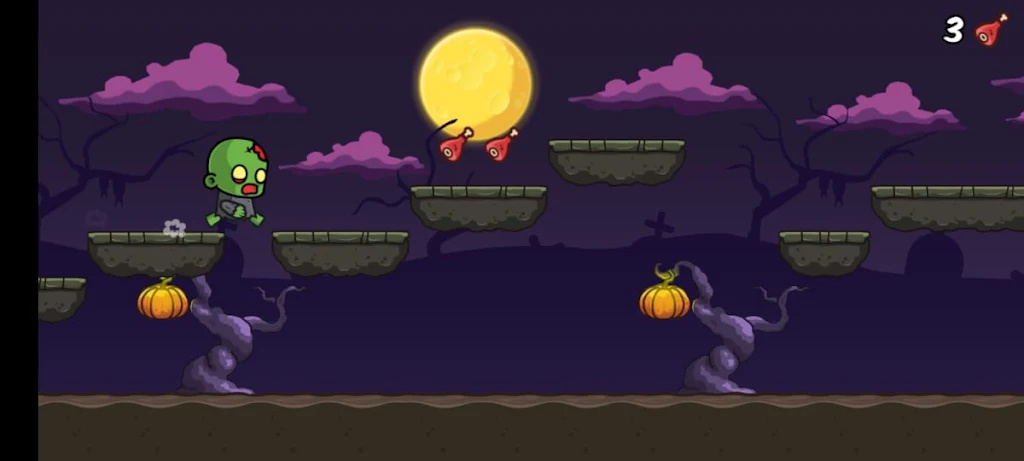 1、在紧张刺激的节奏中控制僵尸奔跑、跳跃、滑行,躲避不断出现的陷阱;