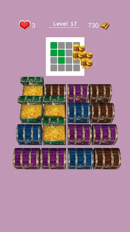 打开木箱拼图是一款非常休闲益智的手机闯关游戏,在这款游戏中玩家们要根据方格图形中的图案来顺利的打开你在游戏中的宝箱,顺利的获取金币闯关成功,在这里看似简单的玩法却非常考验玩家们的眼力,各种不同的关卡挑战等待玩家们前来下载体验。