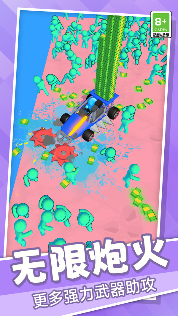 僵尸别想跑是一款非常好玩的手机割草题材游戏,在这款游戏中玩家们能够控制自己的火柴人在线驾驶自己的战车进行割草挑战,游戏中玩家们能够体验到最解压的游戏模式,开上自己的战车在地图上疯狂的收割丧尸,消灭丧尸你会获得金币奖励,你能够购买更多的道具配件提升自己的战车属性。