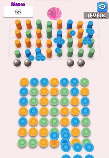 游戏玩法简单容易操控,每个颜色圆柱体都有非常重要的作用,玩家要合理的摆放他们的位置。