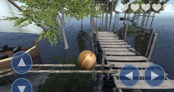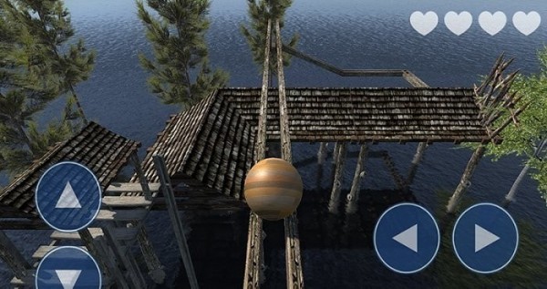 3.周围全是水,木桥上平衡球必须避开障碍物,有没有掉入水中到达终点。