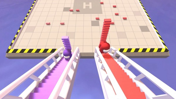 2.桥梁材料生成在地面上,拿起正确颜色的瓷砖,小心,你应该躲避比你强大的对手。