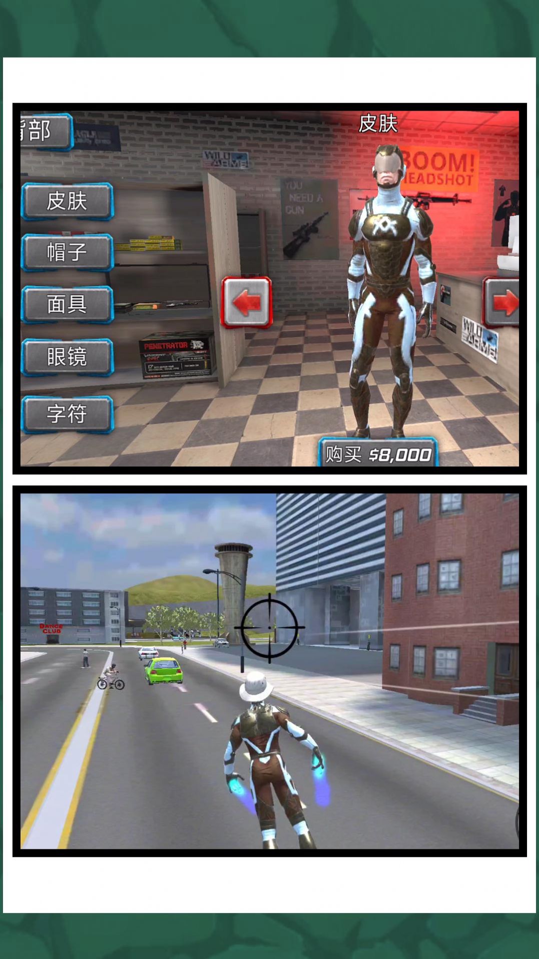 2、能够尽情穿梭在充满危险的3D城市之中,会随机出现凶猛的超级罪犯,威胁市民和整个城市的安全。