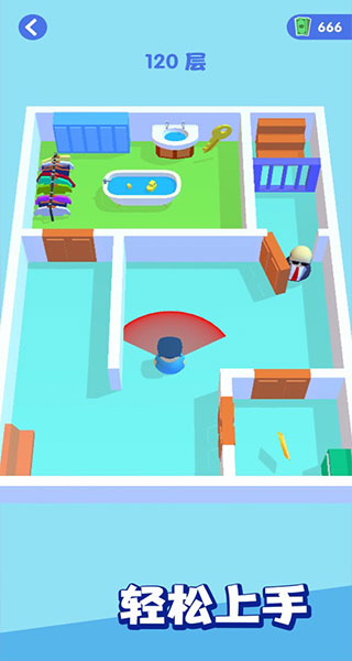 是特工就上一百层是一款游戏玩法以闯关竞技为主要模式的游戏,游戏的过程中,玩家操控的小人是一名特工,玩家要做的就是通过层层阻碍在关卡中找到宝藏,并且在不惊扰守卫的同时将宝藏带出来,警卫是有巡逻范围的,玩家一定要注意避免惊动警卫以免发生不必要的纠缠。