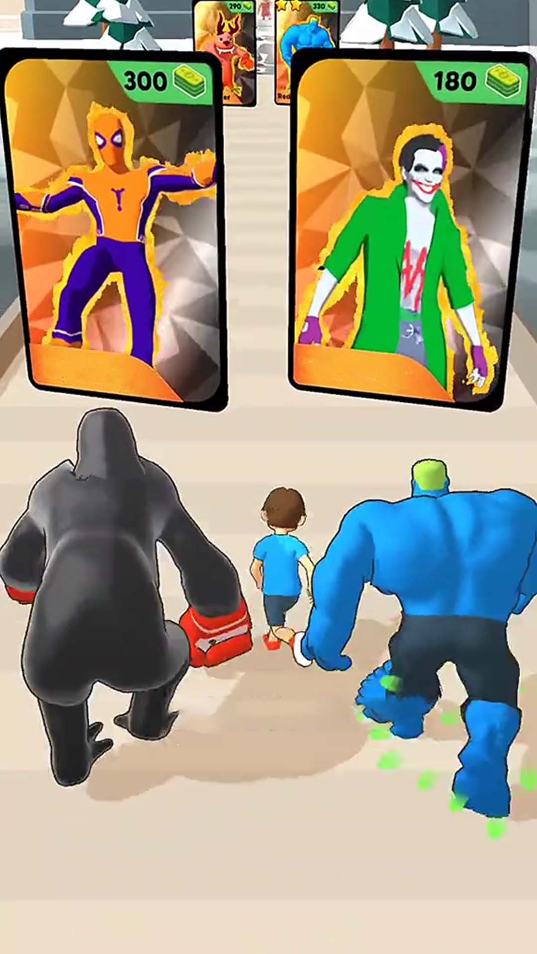 2、在赛道中搜集金币和特殊道具,适时变形为更强力的巨人形态,突破难关;