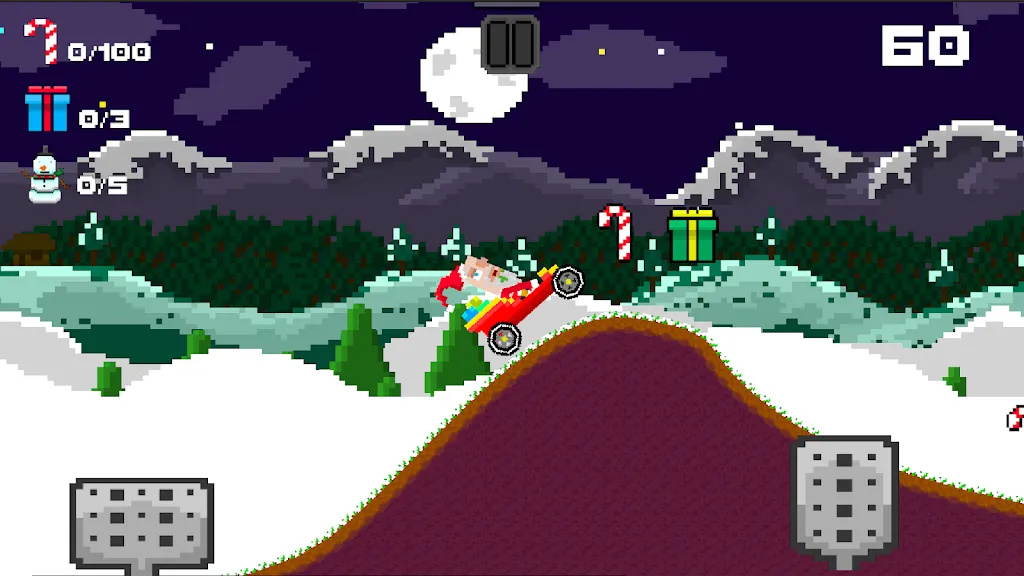 【超快的圣诞老人】这是一款采用了像素画风让你扮演一个圣诞老人开始冒险的游戏,这是一个十分复杂的山路玩家们需要灵活的走位才行,但是我们拥有很多的技能,不同的技能给你带来的效果都是完全不同的,收集了很多的道具可以直接使用哦!