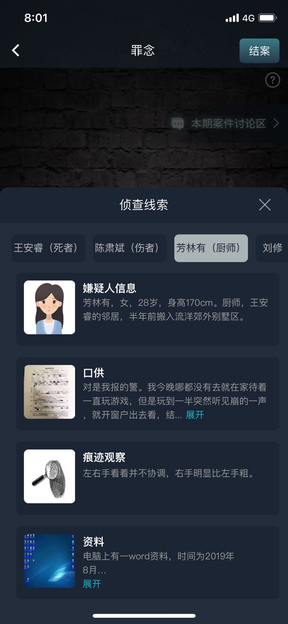 3、在游戏当中不断完成案件的推理,并最终得到一个个正确的答案。