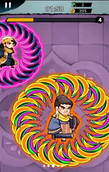 1、你将扮演一名角色,会有很多刀片围绕着你旋转,利用这些刀片去打败了敌人