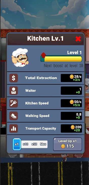 2、关卡设置多样化,风格从街头小吃摊到高级餐厅。