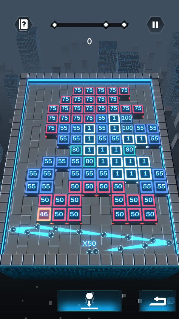 2、在无数小球被派遣的过程中,将会出现壮观的画面。如果你继续打破砖块,你会得到更高的分数。