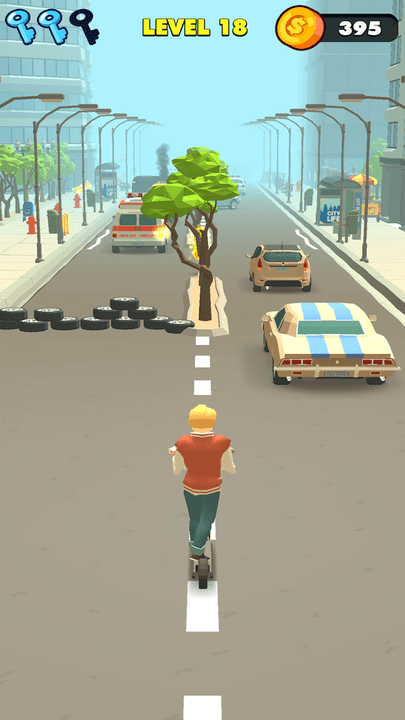 2、通过驾驶滑板车穿过车流,刺激的游戏体验让玩家充分体验速度的乐趣。