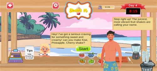沙滩夏日小店这是一个典型的模拟商业游戏,在游戏中,玩家经营这家小吃店,他们每天需要根据客人的要求制作美味的食物来赚钱以扩大和升级商店。简单的商业方法适合所有玩家,乐趣总是存在的。大量的配料可以自由选择,喜欢的小伙伴来试试看吧。