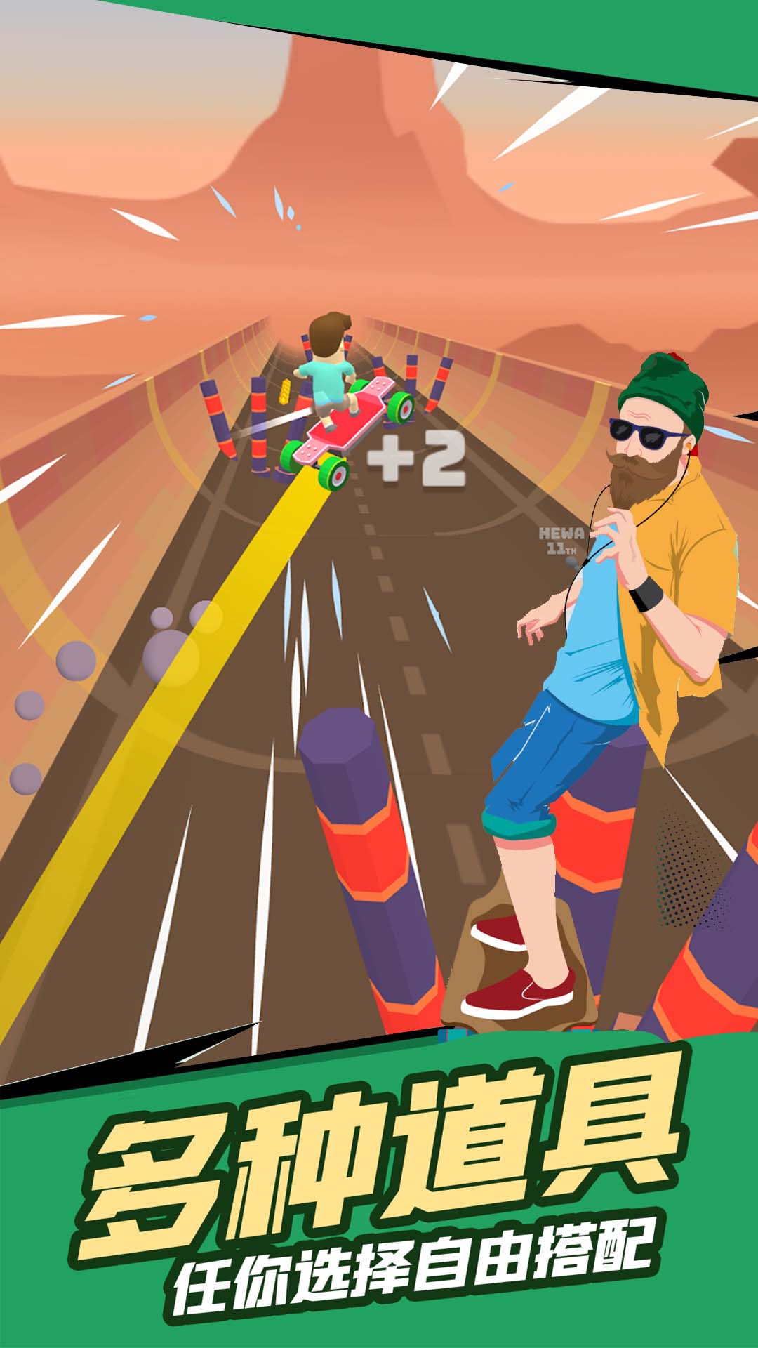 3、通过收集金币,你可以升级你的滑板和道具。