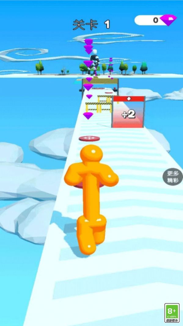 将不断向前奔跑,玩家需要通过触摸屏幕来控制果冻人的跳跃和滑动,以避免各种高墙。