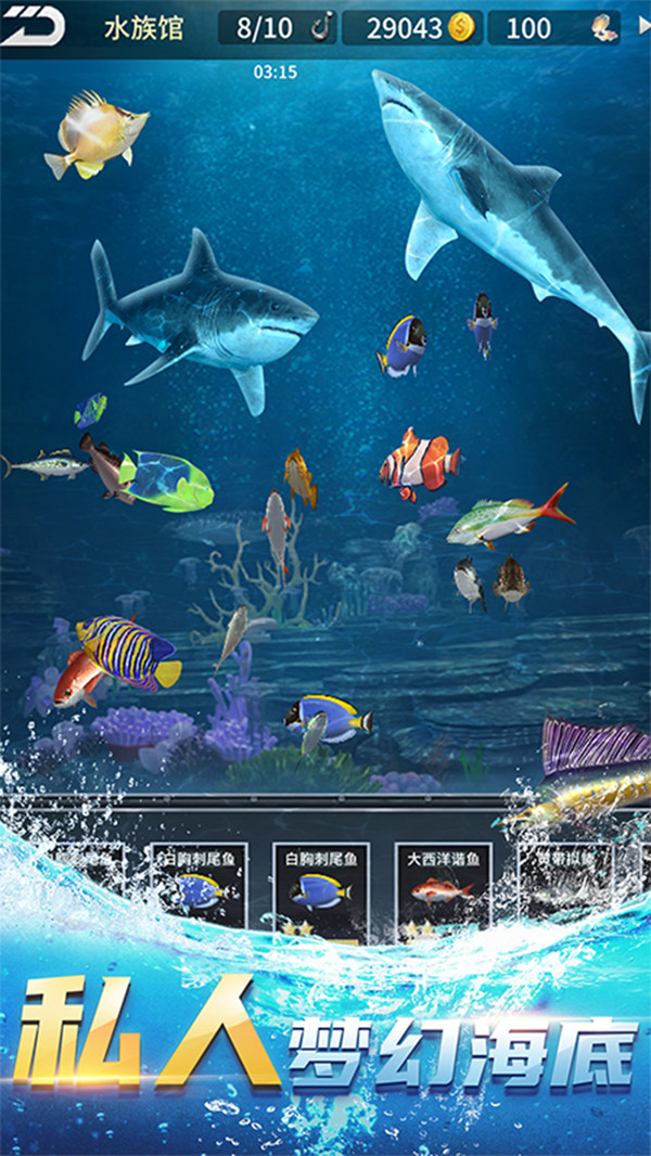 2、钓得珍稀鱼类可放入私人水族馆,打造独一无二的海洋景观。
