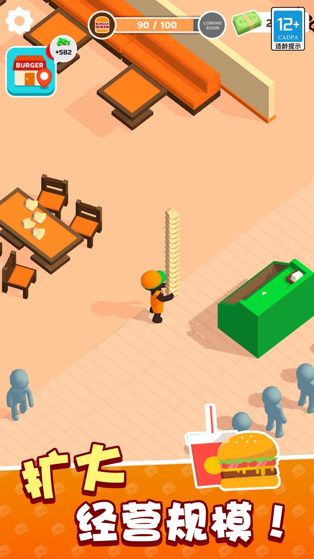 3、在轻松愉快的氛围中经营饭店,赚取财富开启更多的玩法。
