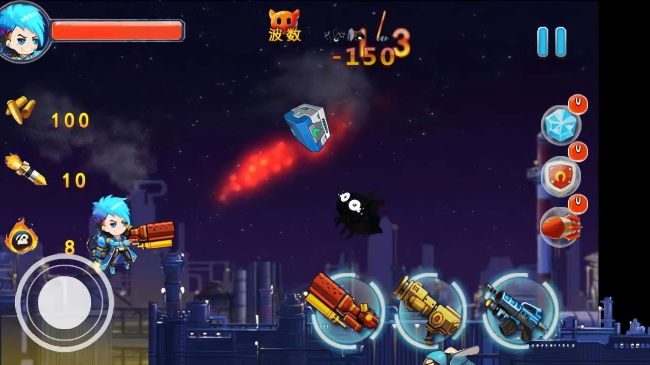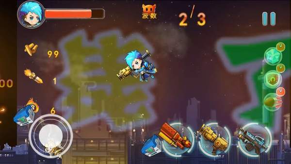 1、采用横版射击玩法,玩家需要灵活控制角色走位,还可以搭配不同的枪支去攻击敌人。