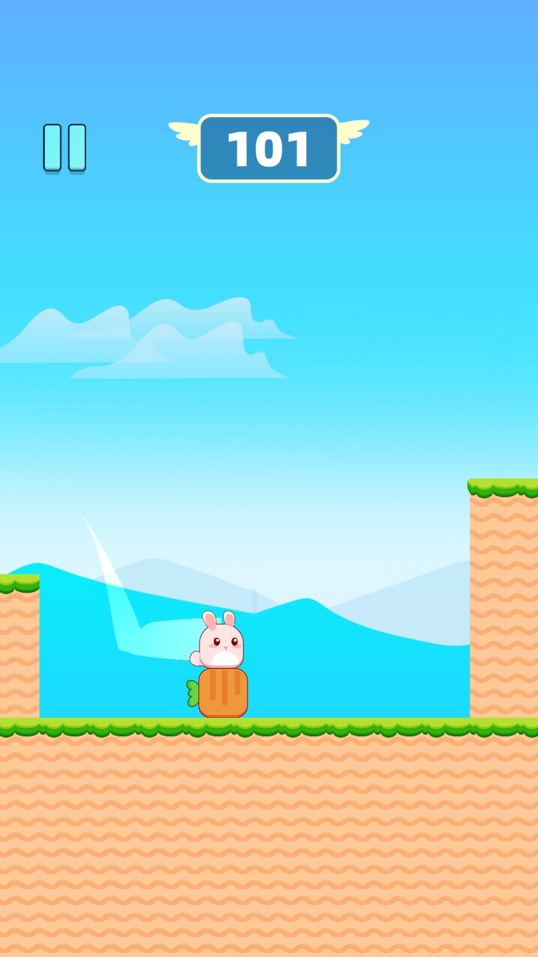 1、轻触屏幕,控制兔子跳跃,巧妙避开沿途的陷阱与敌人,保持兔子前行;