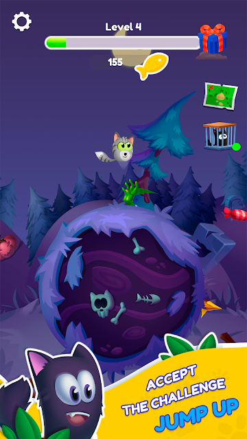 玩家只需要在屏幕上轻击一次进行小跳跃,轻按两次进行跳高来控制猫咪躲避障碍物。