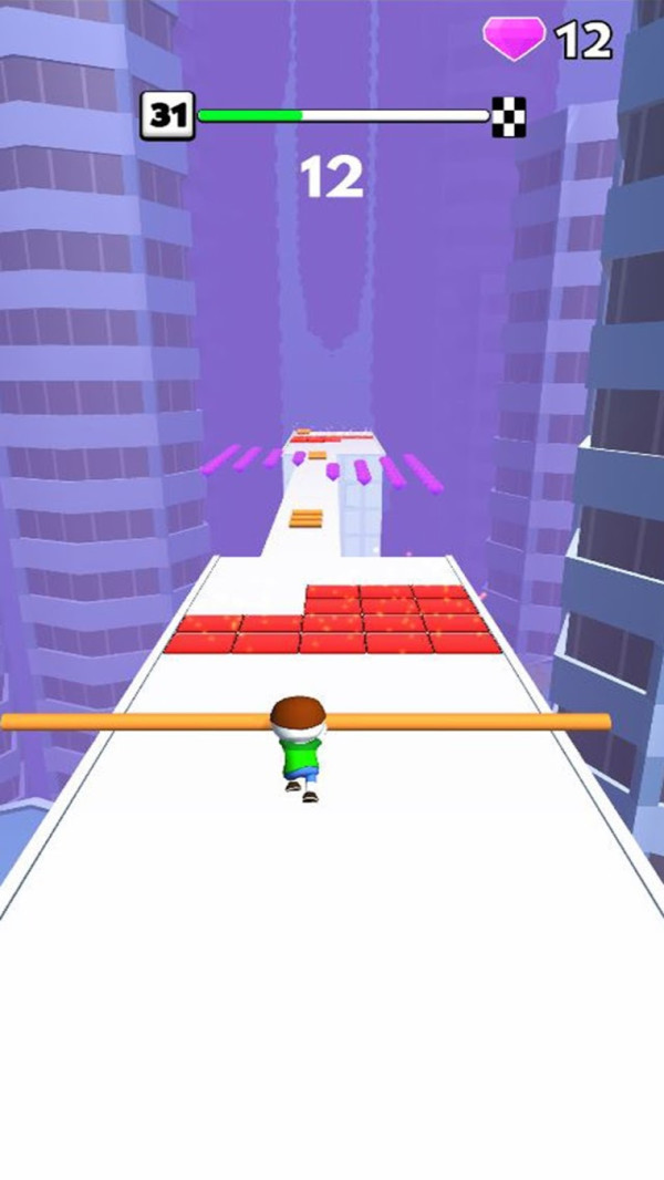 1、控制你的角色,使用不同的木棍,帮助你轻松的跨越各种各样的障碍物。