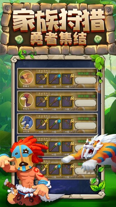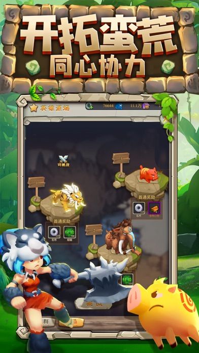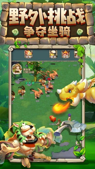 3、和众多的远古萌宠搭配助战,捍卫部落荣耀,开启奇妙的探险之旅。