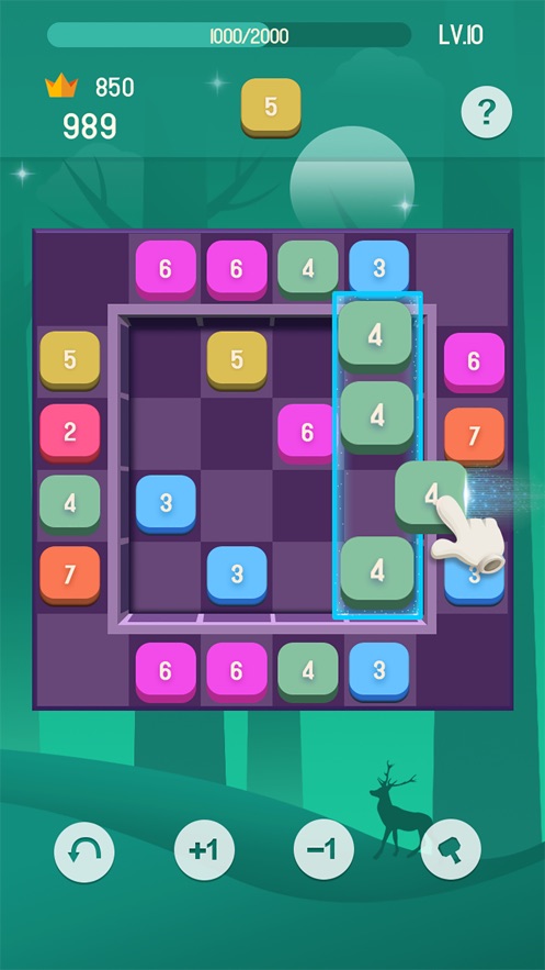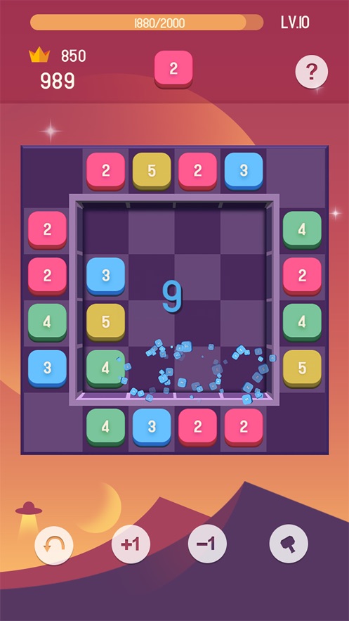 看到编号的正方形吗?将正方形它们放在一起,将三个或四个相同编号的块排成一行以消除它们;