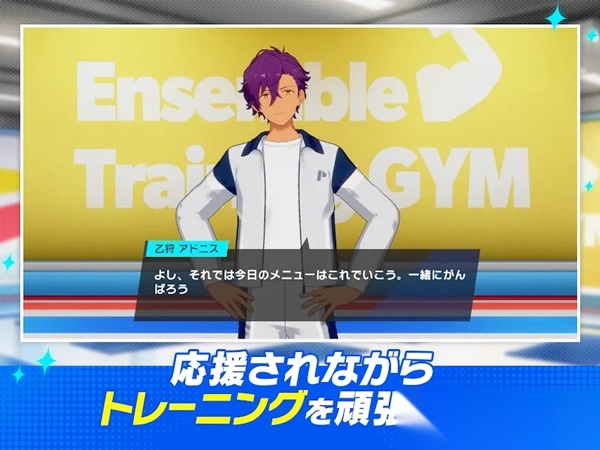 偶像梦幻祭!!Training日服最新版创新性地将偶像团体的训练生活与各类体育项目相结合,如舞蹈、体操、田径等,打破传统音乐游戏模式,去发掘有潜力的新人成为练习生,再将他们送去出道,寻找各种资源,帅哥们组成偶像团体。