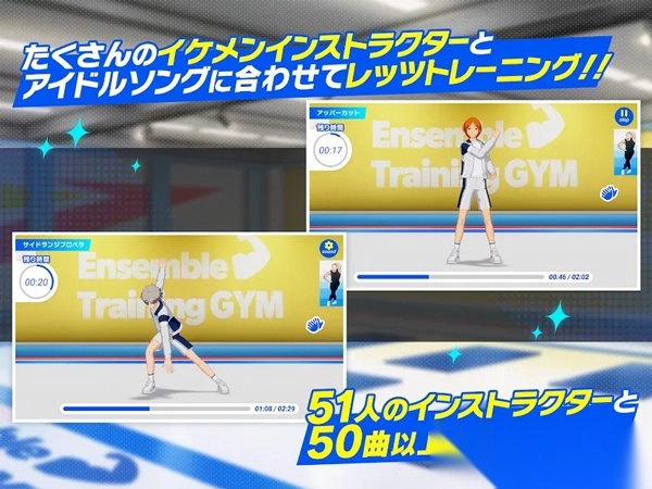 在游戏中,你可以解锁50多位不同的偶像、学长或老师角色,从中选择你最喜欢的角色成为你的健身教练。每个角色都有自己独特的外观和个性,让你可以找到与之产生共鸣的角色。