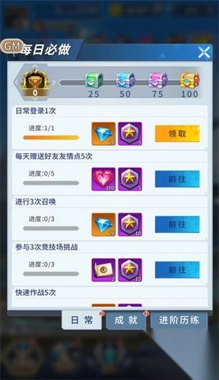 完成指定任务,可以领取大量钻石