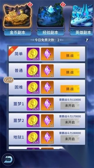 每天有2次免费挑战次数,挑战可获大量金币,挑战的难度越高,金币越多