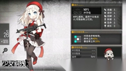 相对较高的回避能力,可以弥补生命值不足的缺点,毕竟只有有效的攻击才能让生命值降低!MP5适合面对密集型攻击但命中低的敌人,比如敌方冲锋枪梯队。力场盾的技能,能让MP5在一定时间内闪避所有伤害,因此也让其备受大众青睐。