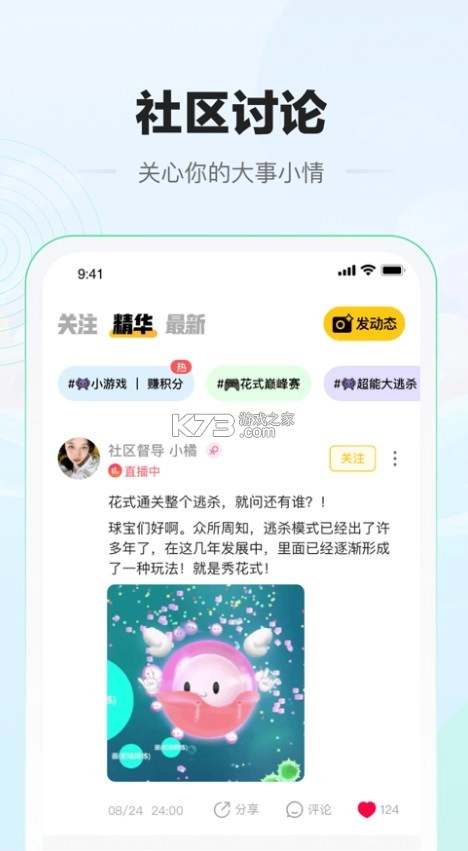 欢迎来到糖豆官方游戏社区,即《糖豆球球大作战》!这是专门为《球球大作战》玩家打造的官方游戏社区,为球球大作战的球宝们搭建了一个能共享、互动与交流的独特平台。该软件可为球宝们提供最及时、最全面的官方资讯,助你第一时间知晓游戏的最新动态、更新情况以及活动信息。
