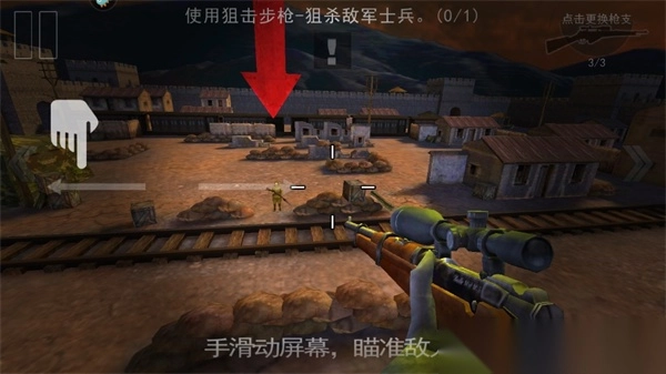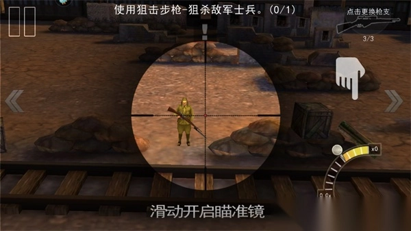 5、这里需要完成游戏给出的任务,使用狙击步枪,狙杀敌军士兵,然后点击继续游戏;