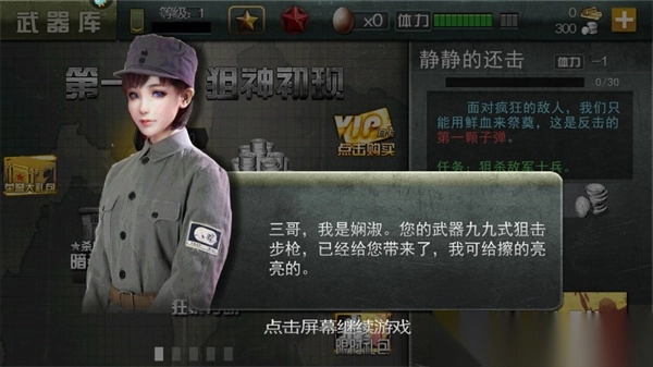 1、首先进入二战狙击最新版,点击屏幕开始游戏;