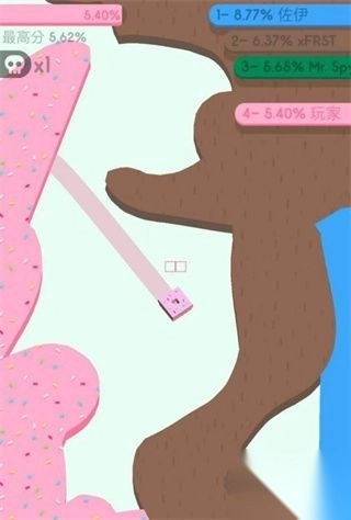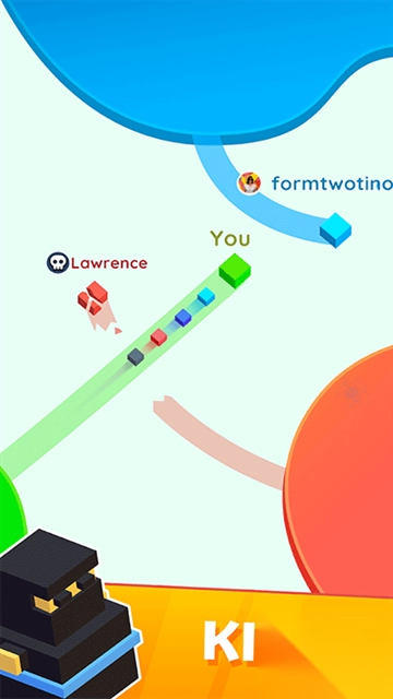 通过移动纸团绘制闭合圈来扩张领地,闭合区域将染成己方颜色并增加领土百分比。