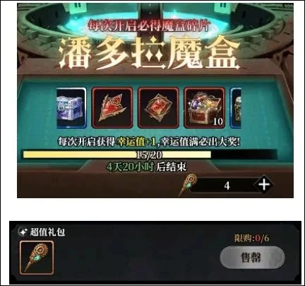 3、【限时活动】中有可使用钻石参与的抽奖活动。像下图的潘多拉魔盒,能用钻石购买6把钥匙,而且抽取次数可累计至下次活动开启,无需担心会被重置。