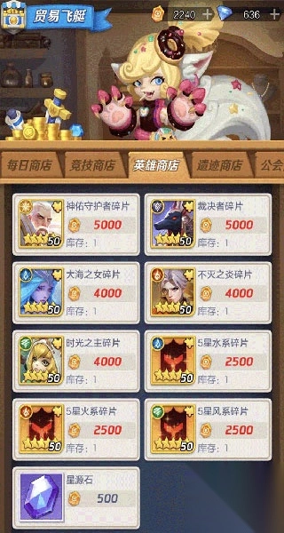 2、 遗迹商店:遗迹商店也会产出5星英雄碎片~玩家每日可稍加关注!!