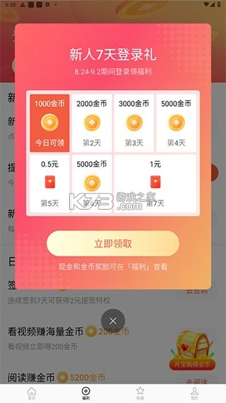 4、看剧累积时间得金币,新人有七天签到福利