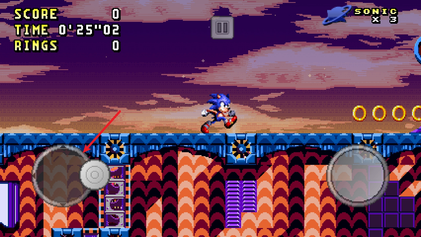 1、进入游戏后,通过左侧的摇杆控制索尼克移动。