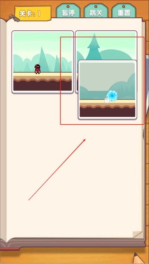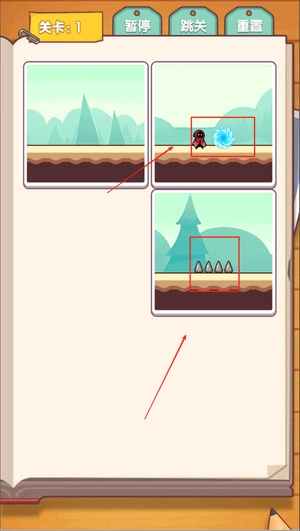 1. 在屏幕上点击操作,挑选并拖动地图块来进行排列组合,以此改变小红帽的前行路线,使其躲开陷阱,顺利通往传送门。