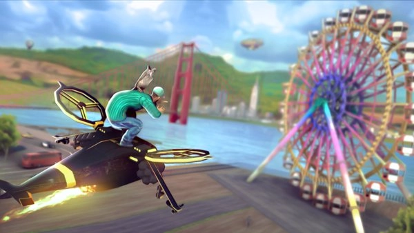 2、在这个偌大的城市中驾驶无人机、赛车等不同的交通工具。