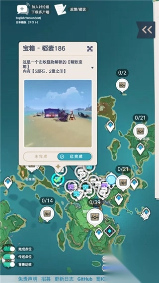 5、在地图中,点击对应区域里的宝箱图标,就能查看该区域内的全部宝箱。